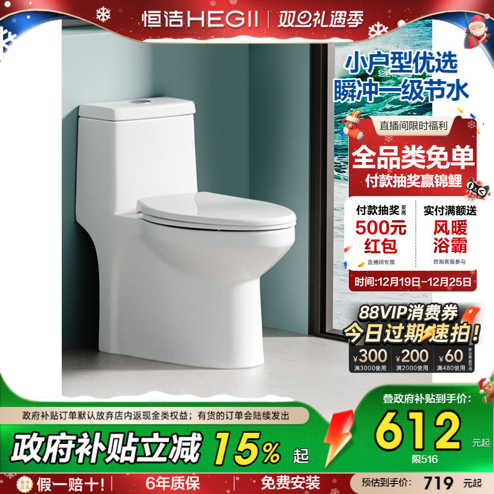 【政府补贴】恒洁HEGII抽水马桶防臭坐便器厕所家用节水小户型516