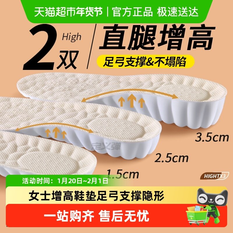 女士专用增高鞋垫足弓支撑女新款冬不累脚隐形内增高垫运动鞋靴子
