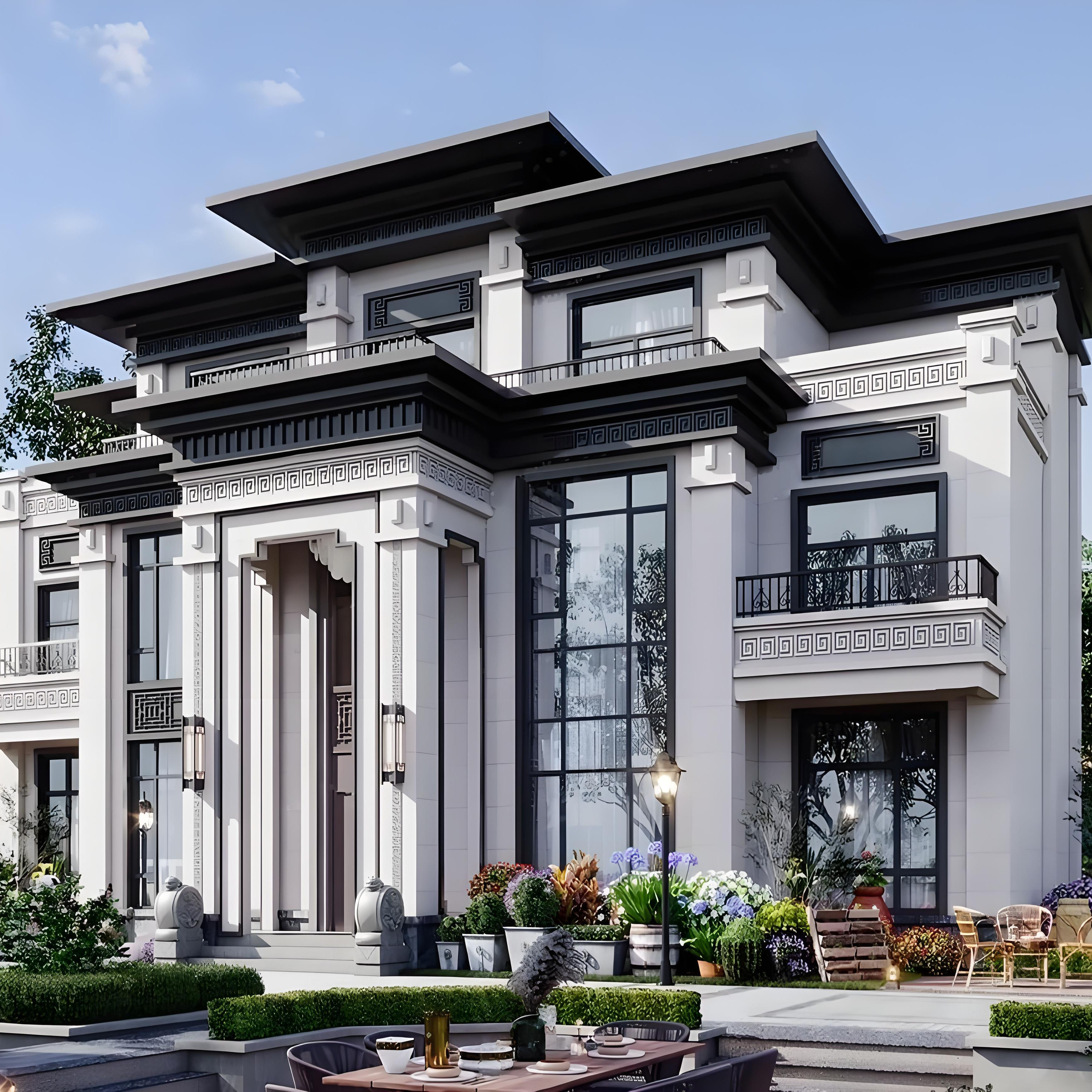现代新中式独栋别墅农村乡村自建房建筑设计图纸su模型CAD施工图