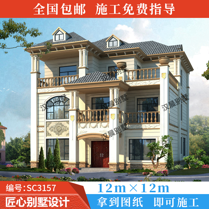 自建房建筑别墅图纸定制设计农村效果图一二三四层半施工图方案图