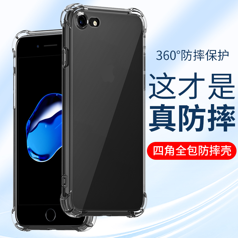 度泉适用苹果8气囊防摔6手机壳新款iPhone7硅胶6sPlus四角i8保护套8p软SE2男女SE3代简约透明全包镜头创意