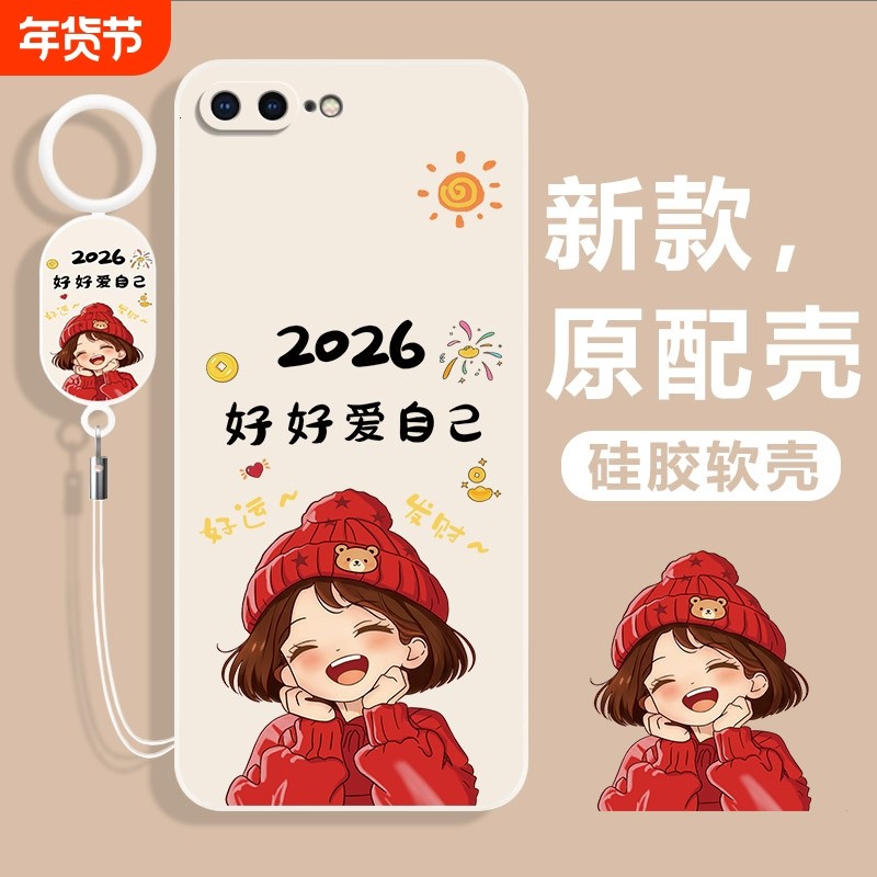 直边晶透苹果7手机壳8新款iPhone7plus全包边8PLUS镜头全包防摔新年保护套女硅胶软壳可爱卡通创意新品高级感