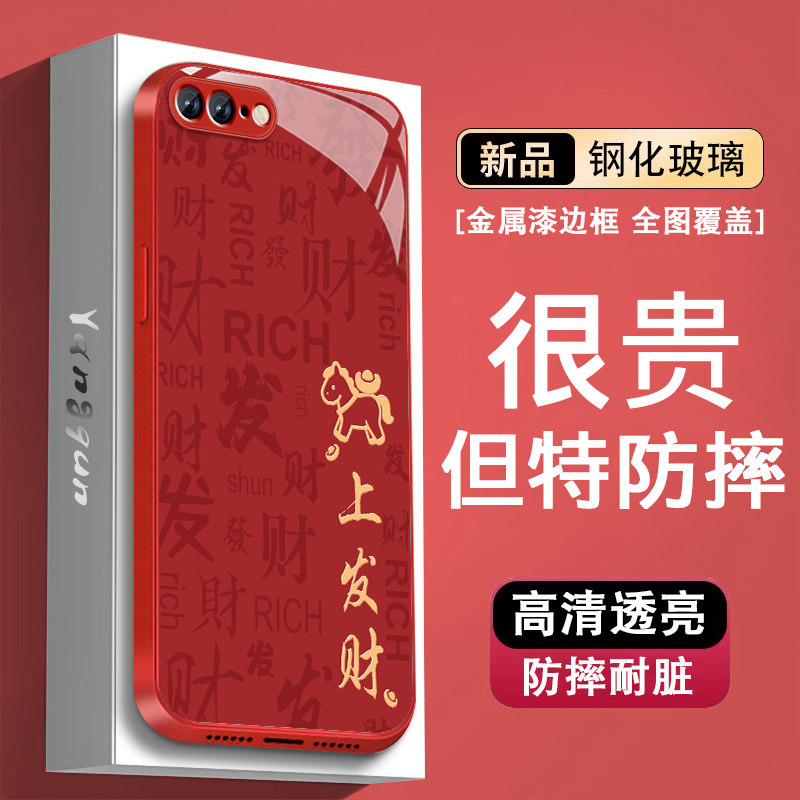 适用苹果8plus手机壳男iPhone7plus新款新年ip8本命年se2马上发财三代保护套金属漆玻璃全包防摔硅胶红色外壳