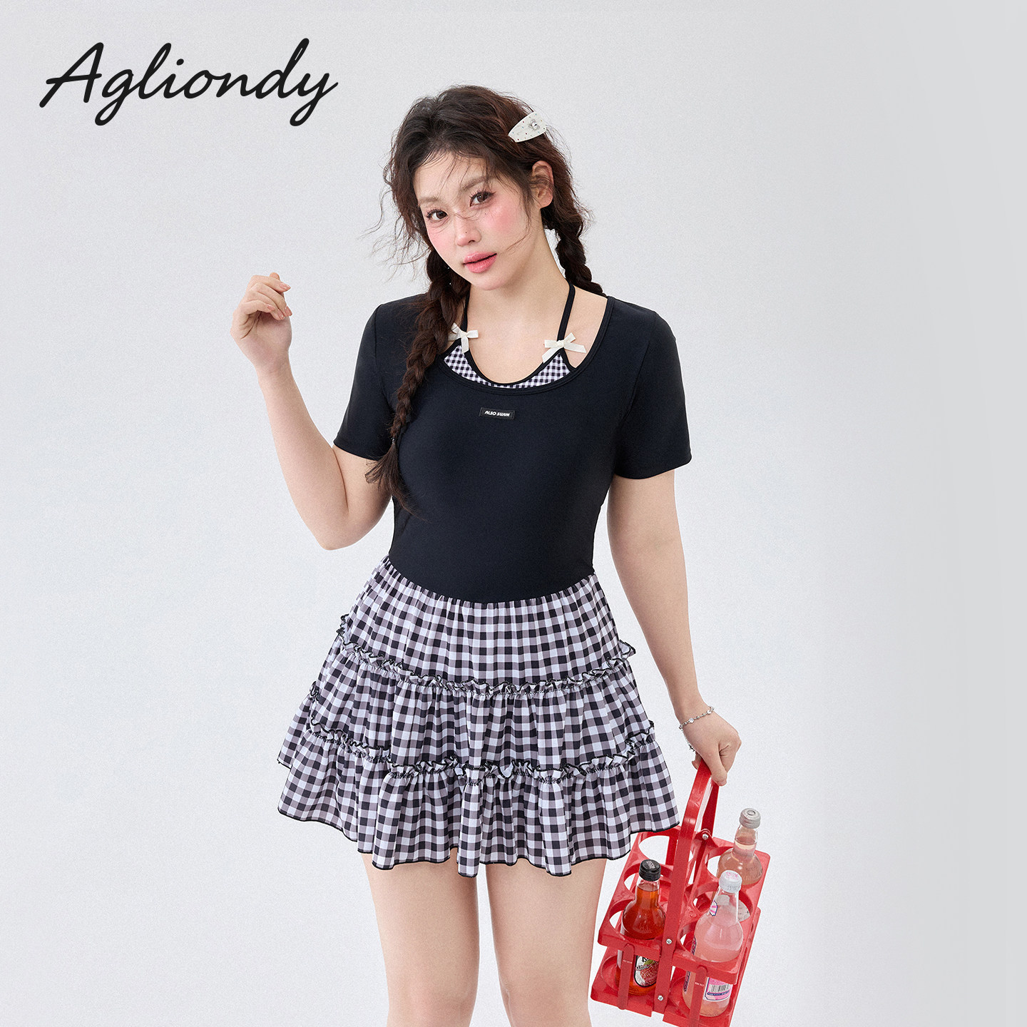 agliondy大码泳衣女士泡温泉高级感遮肉显瘦2026新款微胖连体泳装