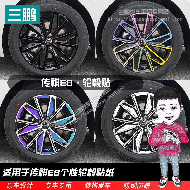 适用于传祺E8轮毂贴纸外观改装轮圈装饰用品划痕遮盖黑化膜车贴膜