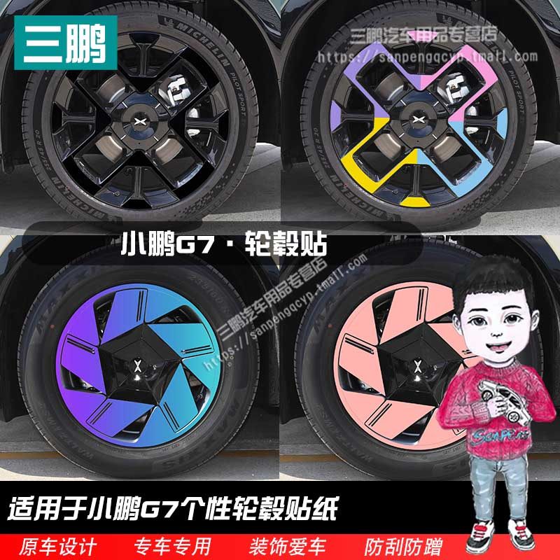 专用于小鹏G7改装饰轮毂贴纸装饰碳纤维车贴熏黑化改色膜汽车用品