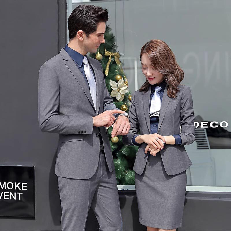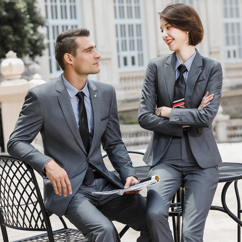 春秋男女同款职业装高端灰色韩版西装套装银行工装商务正装工作服