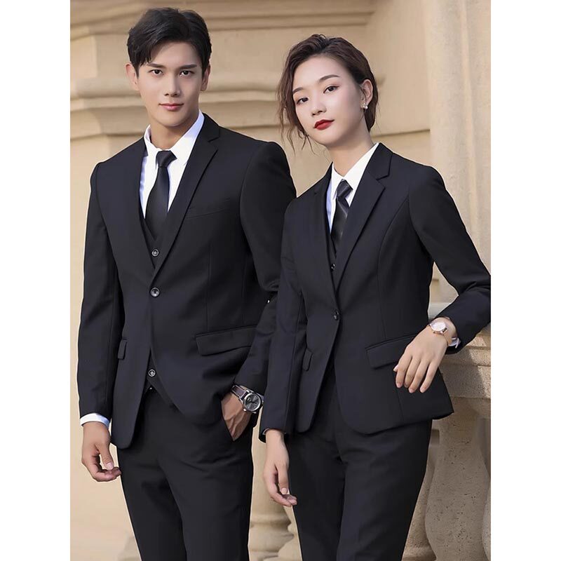 黑色西装套装男女同款职业工作服秋冬公务员销售商务酒店经理正装