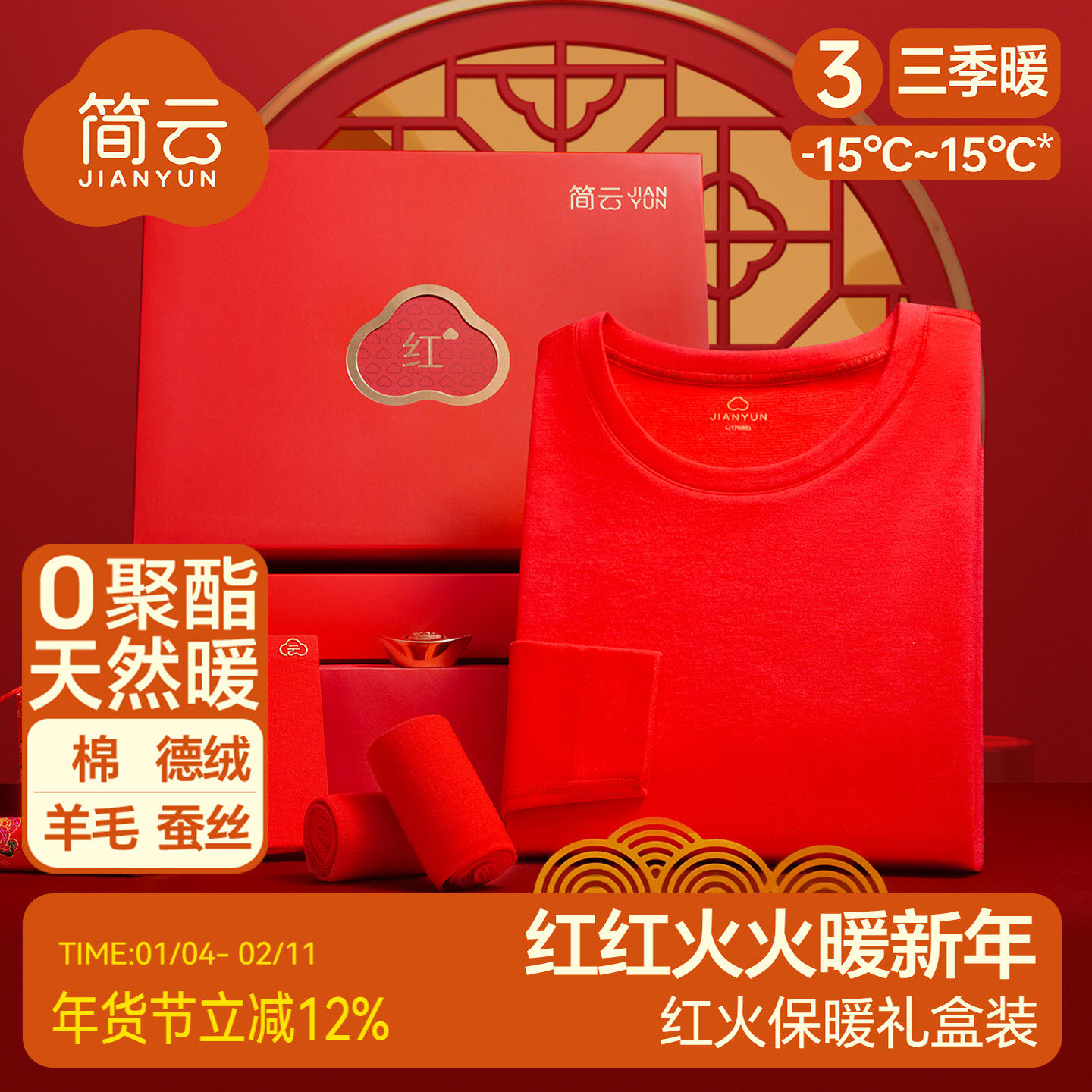 - 男大红秋衣秋裤套装
