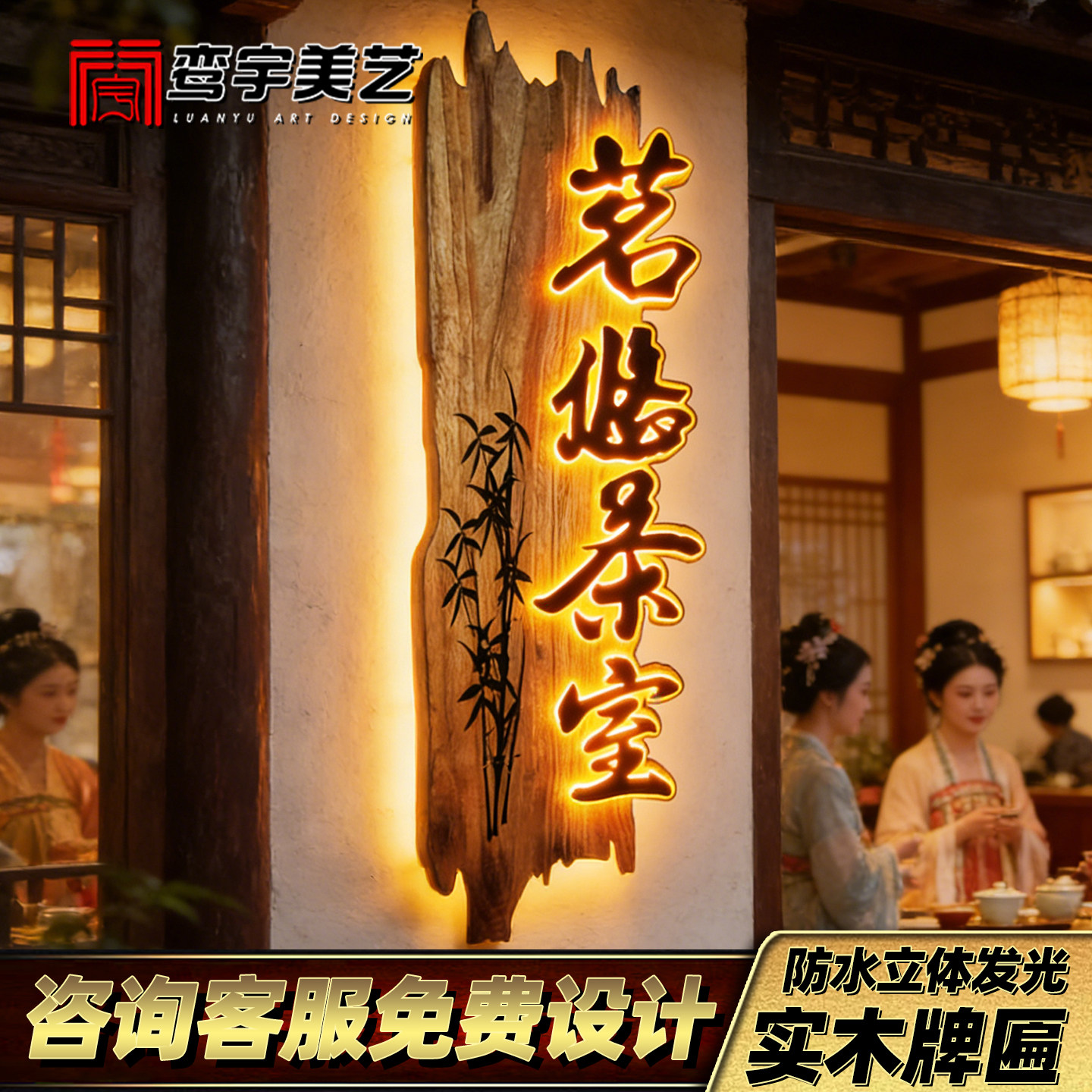 实木牌匾发光门头定制仿古木质门牌定做农家乐民宿茶叶店木质招牌