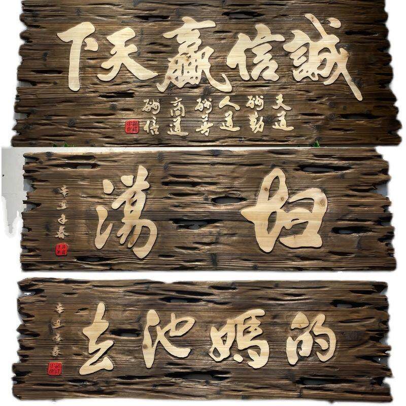 牌匾定制老门板匾额定做风化刻字复古招牌实木仿古老榆木牌匾门头