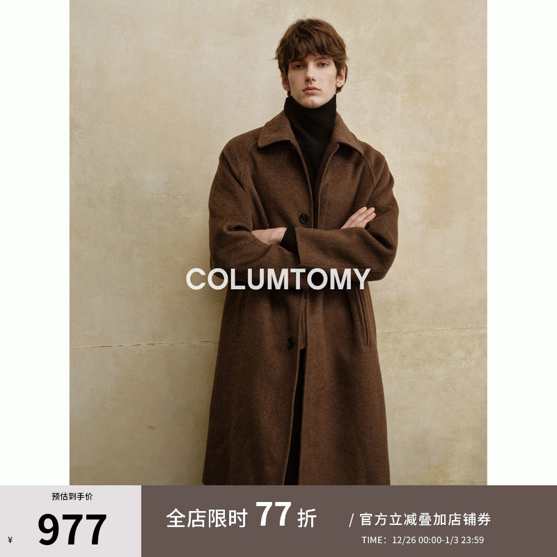 ELl【桦木】100%绵羊毛复古经典巴尔马肯翻领双面毛呢大衣冬季男