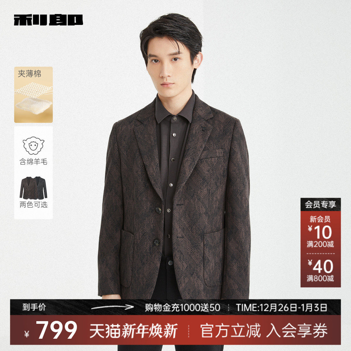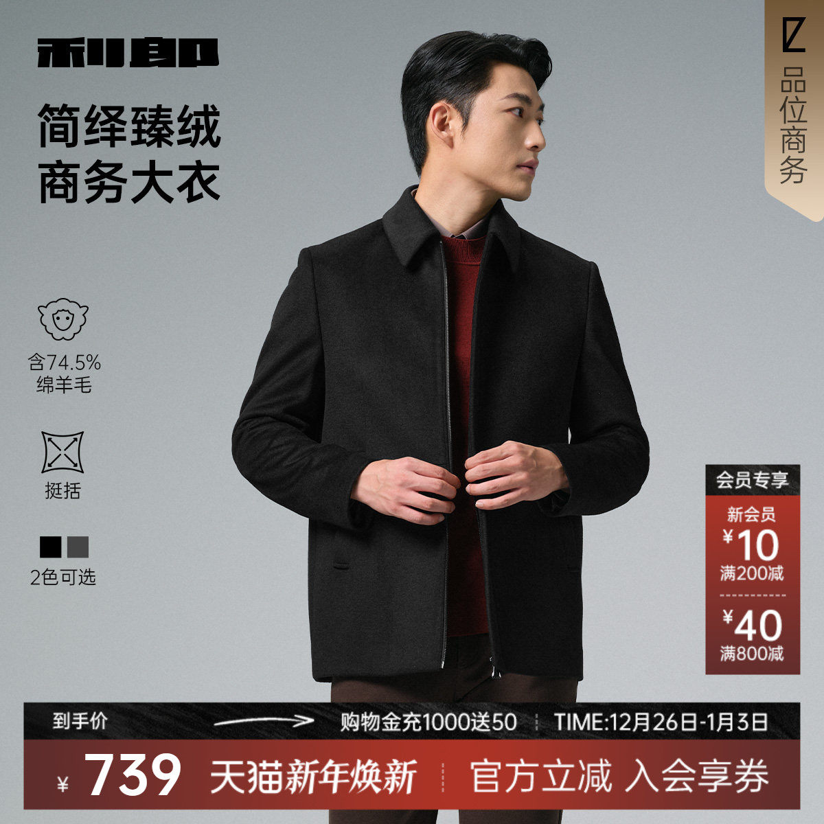 【翻领】利郎官方行政风毛呢大衣男士2025冬季商务男装夹克外套
