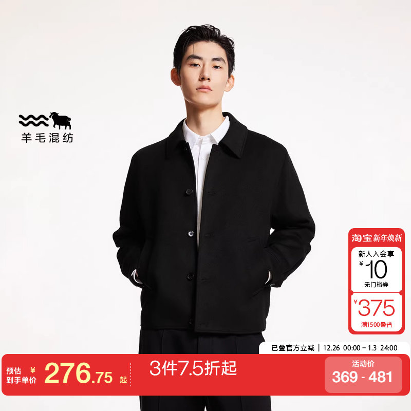 森马毛呢外套男冬季短款呢大衣不规则衬衫式翻领上衣复古时尚百搭