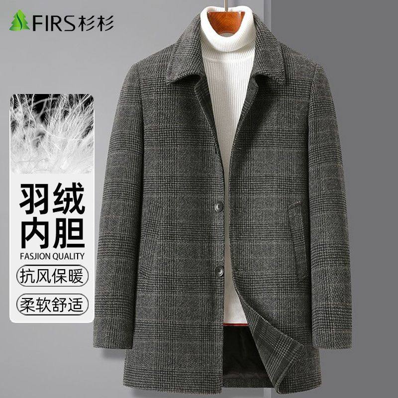 杉杉羊毛大衣翻领呢大衣男士加厚风衣爸爸羽绒中长款内胆休闲外套