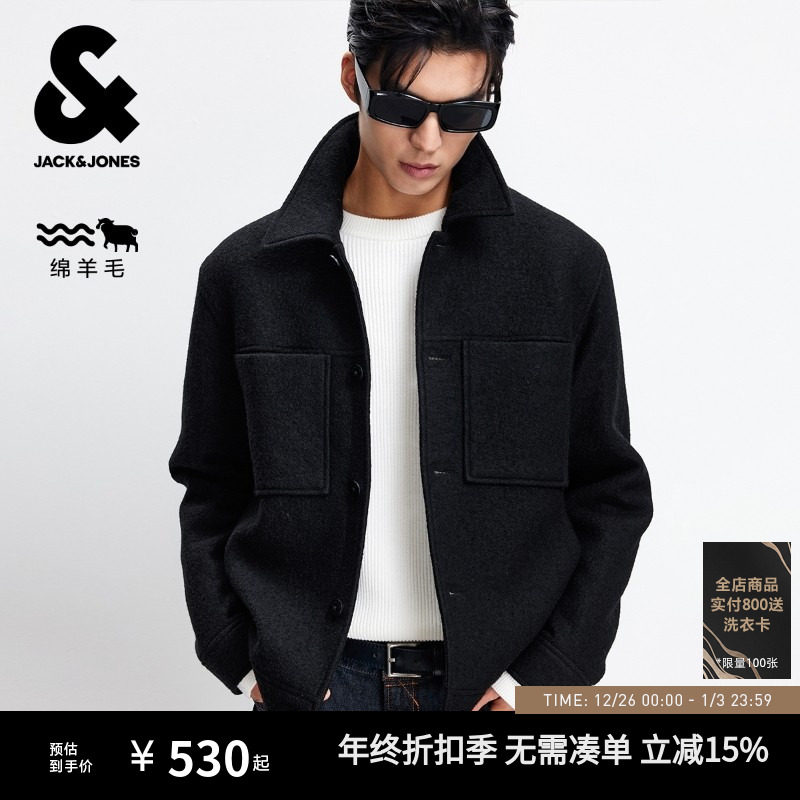 jq区绫致杰克琼斯24秋冬休闲舒适多色外套翻领直筒毛呢大衣男百搭