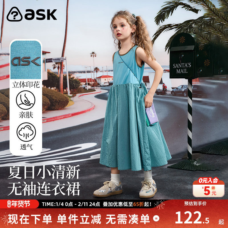蔡爸爸童装2026小清新夏装女童过膝长裙蓝色格子连衣裙子儿童750