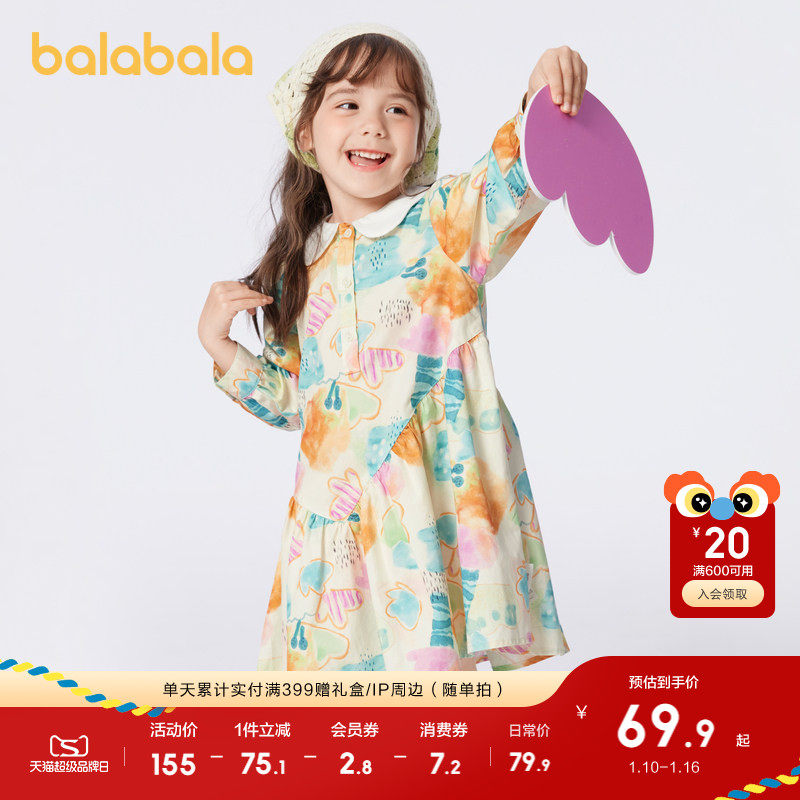 巴拉巴拉女童裙子儿童连衣裙春夏小童宝宝童装文艺清新潮可爱甜美