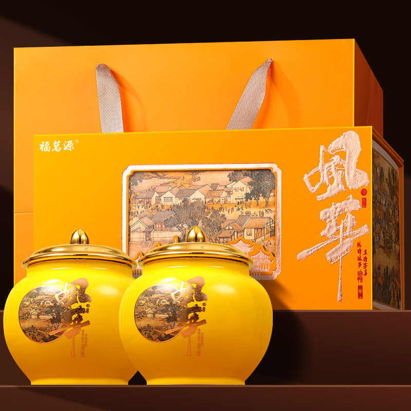 福茗源茉莉花茶 特级川派茉莉飘雪双瓷罐礼盒装250g高档茶叶送礼