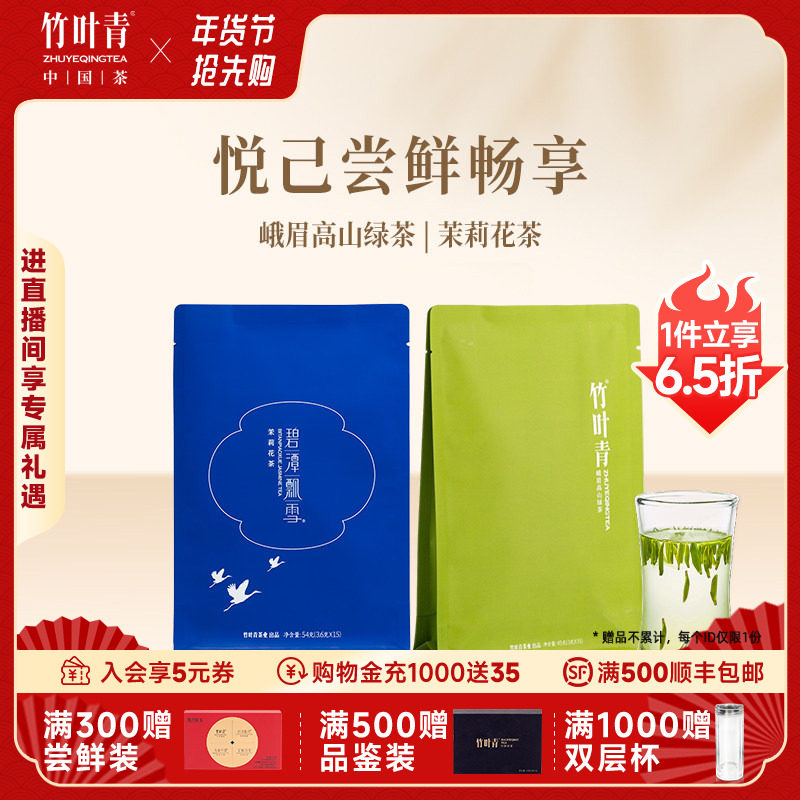 【组合】竹叶青绿茶/碧潭飘雪茉莉花茶 特级品味袋装组合袋装99g