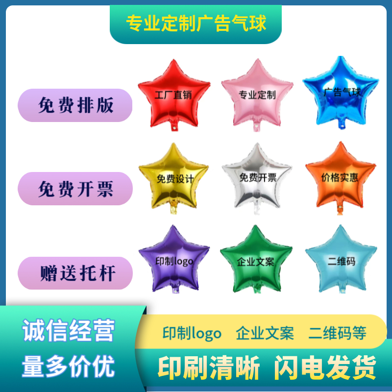 国庆节装饰18寸五星铝膜广告气球印刷二维码logo设计开业地推定制