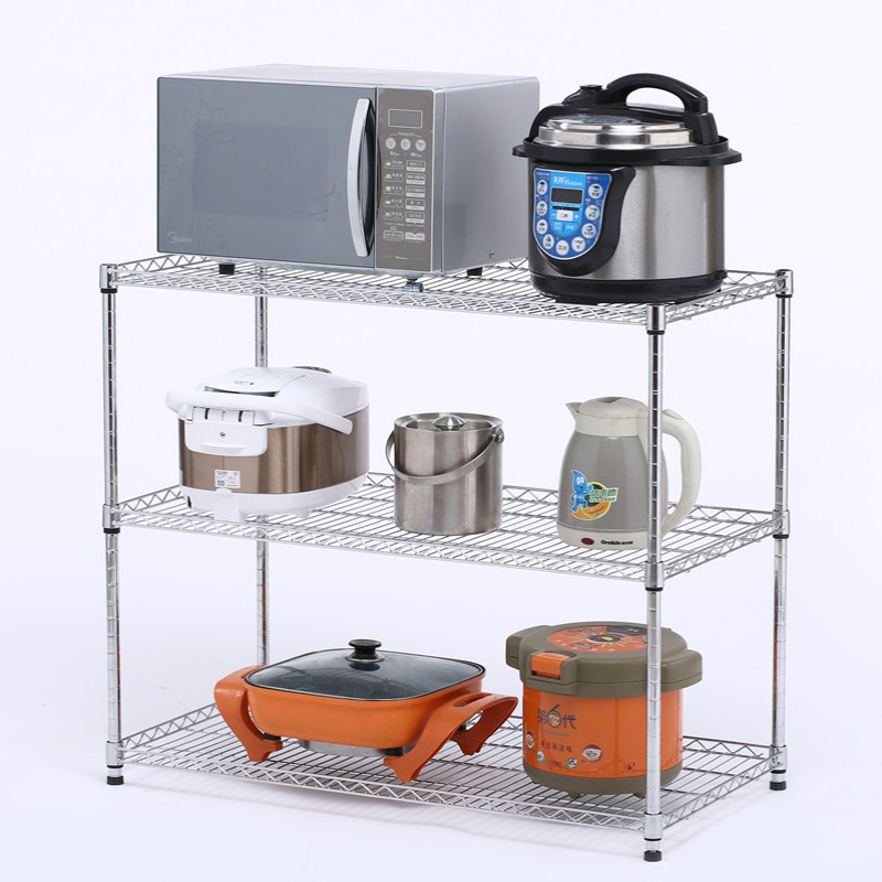 促销厨房置物架三层不锈钢色 微波炉架锅架3层储物架金属收纳架子