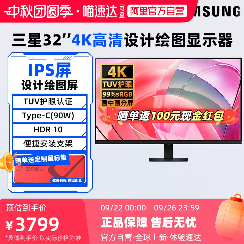 三星显示器32英寸4K设计屏S32D706EAC超高清液晶绘图电脑显示器27