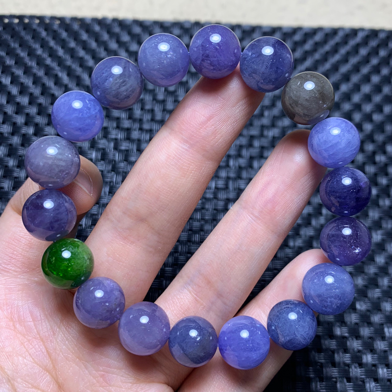 天然海洋之心坦桑石手链坦桑尼亚冰透体紫蓝水晶饰品礼物男女生款
