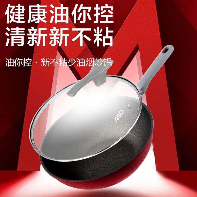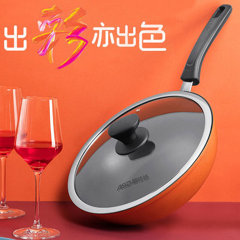 爱仕达炒锅不粘锅无油烟平底锅家用电磁炉炒菜锅专用锅煤气灶适用