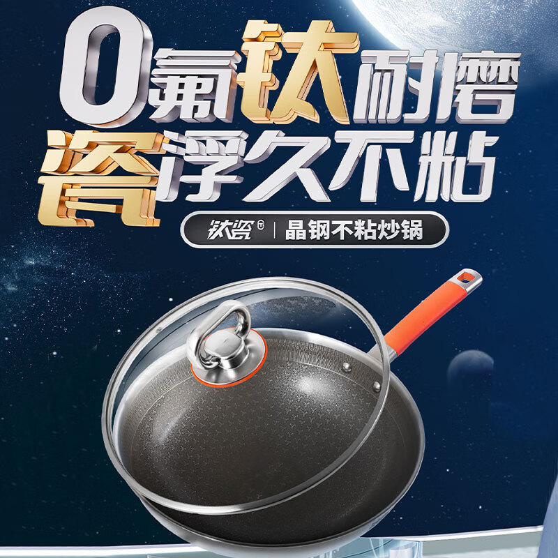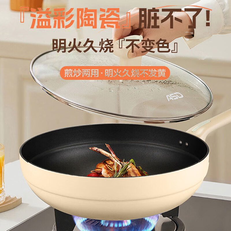 爱仕达钛陶瓷炒锅不粘锅家用无氟涂层炒菜锅燃气电磁炉通用平底锅