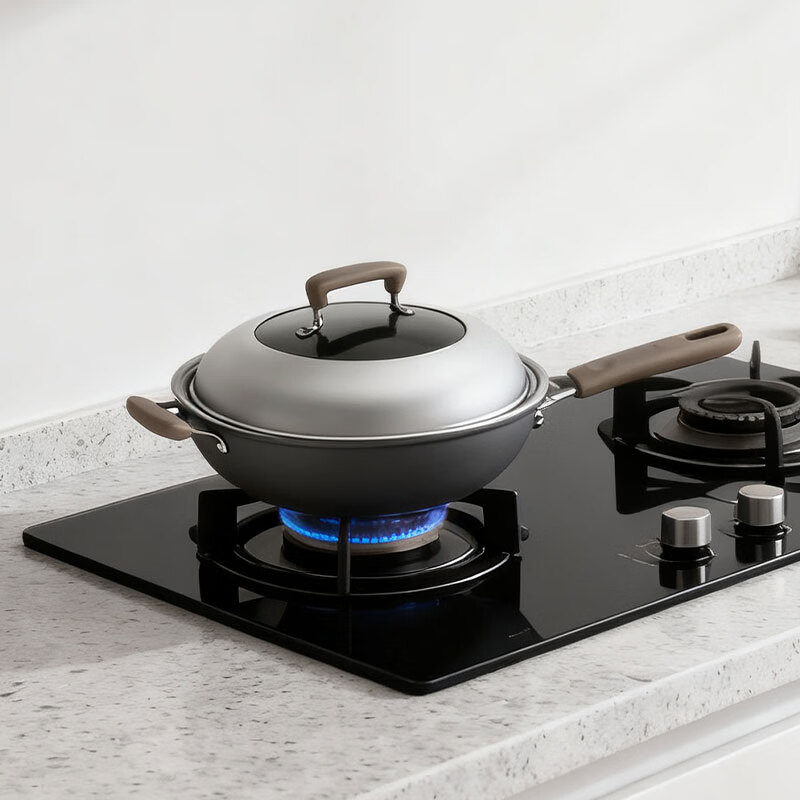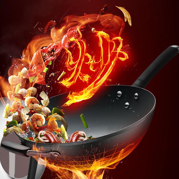 爱仕达炒锅硬氧无涂层铁锅炒锅防粘炒菜锅平底炒锅燃气灶电磁炉锅