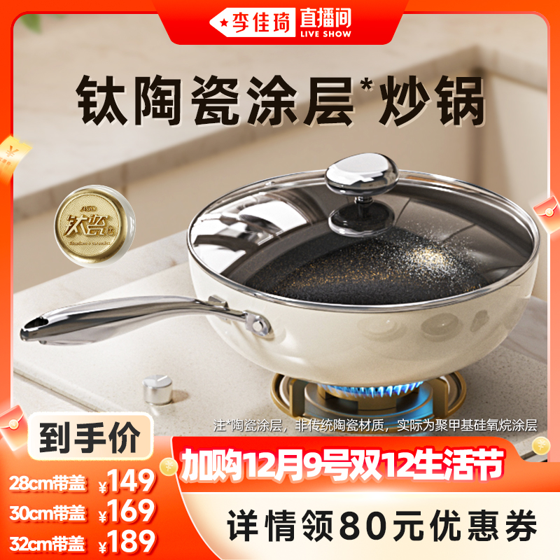 【加购12月9号李佳琦生活节】爱仕达无氟涂层不粘锅陶瓷炒锅家用