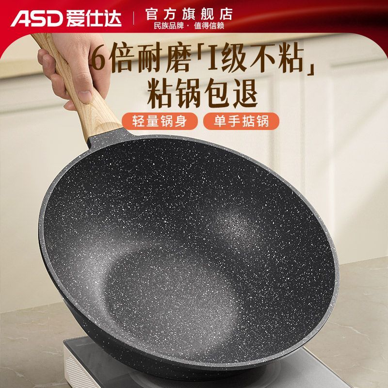 爱仕达炒锅不粘锅家用麦饭石炒菜锅平底电磁炉燃气灶煤气灶适专用