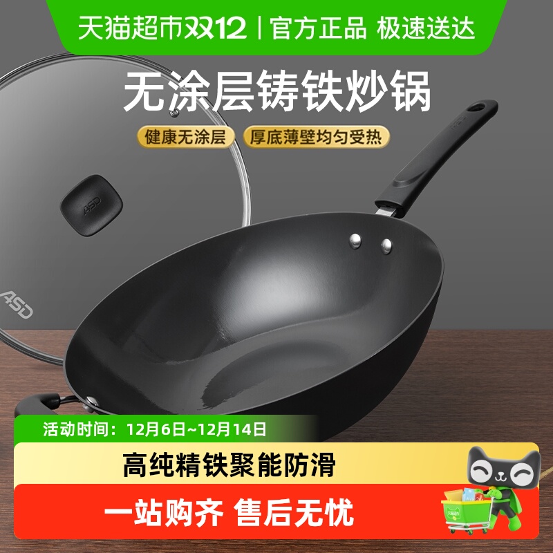 爱仕达炒锅铁锅家用老式铁锅无涂层炒菜锅铸铁锅煤气灶专用锅不锈