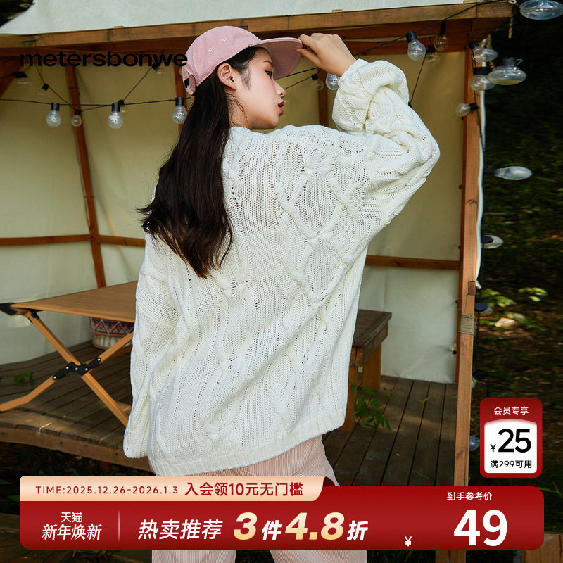 VASSE美蟹 韩版加厚羊毛拉毛纽扣高领毛衣女秋宽松显瘦百搭针织衫