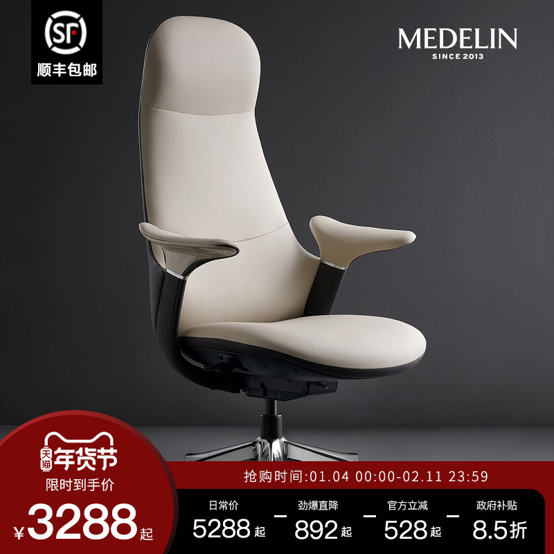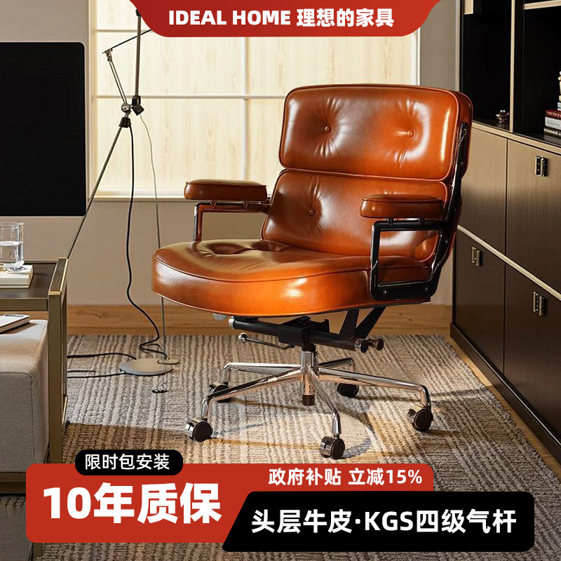 美得林轻奢真皮老板椅家用人体工程学椅电脑椅久坐椅子座椅办公椅