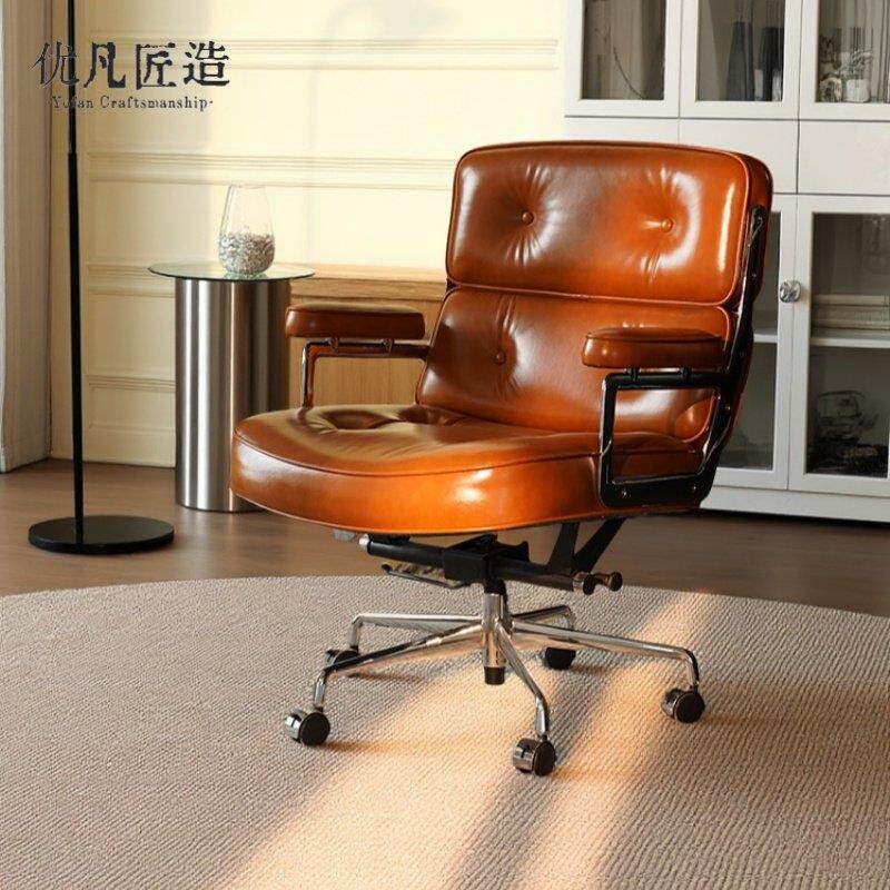 中古复古罗宾转椅人体工程学电脑椅家用舒适办公椅可升降椅子真皮