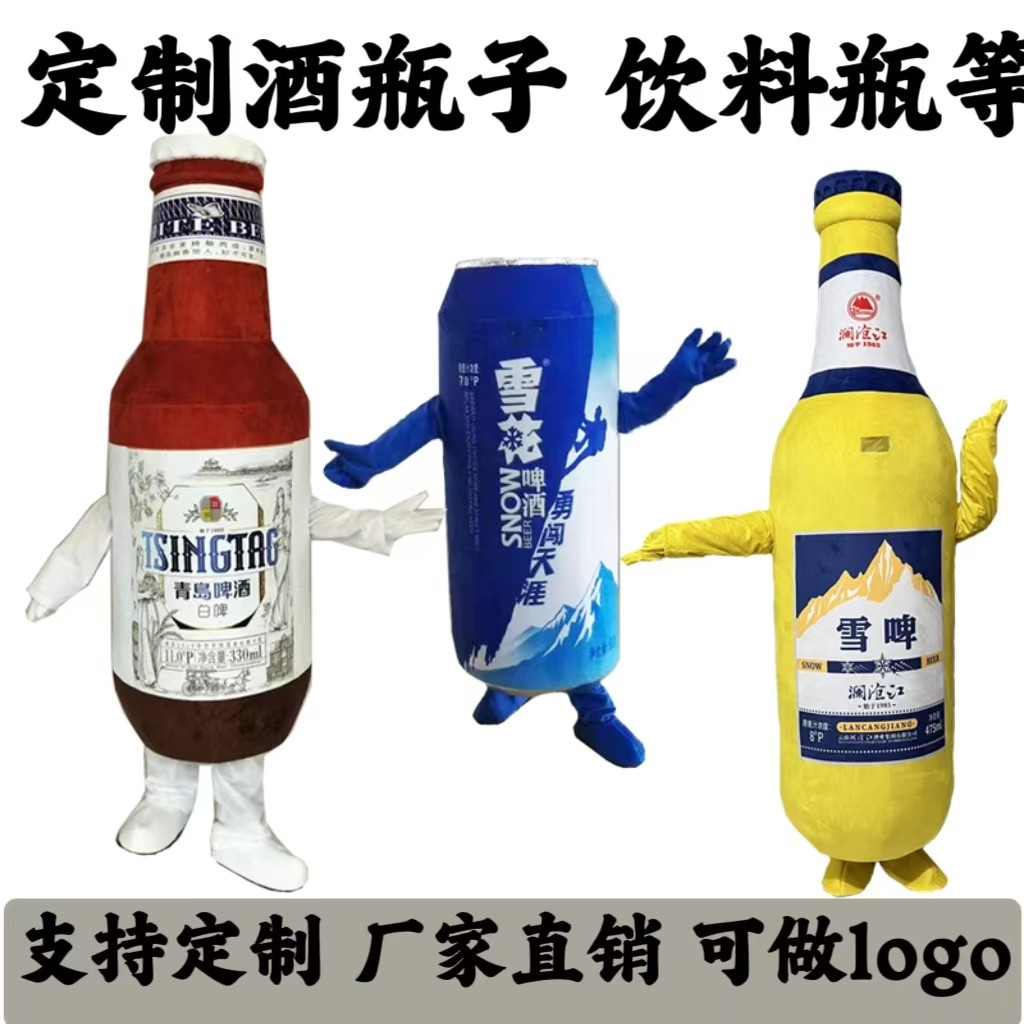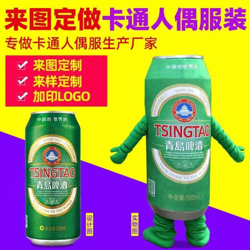 定制青岛啤酒瓶子卡通人偶服装定做雪花啤酒罐子玩偶服定制吉祥物