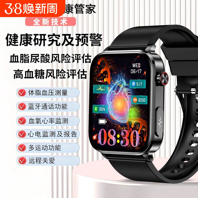 三高监测手表血糖血压监血脂心率血氧心电睡眠运动腕表预警尿酸测量动态检测防水测试连接健康蓝牙通话跑步