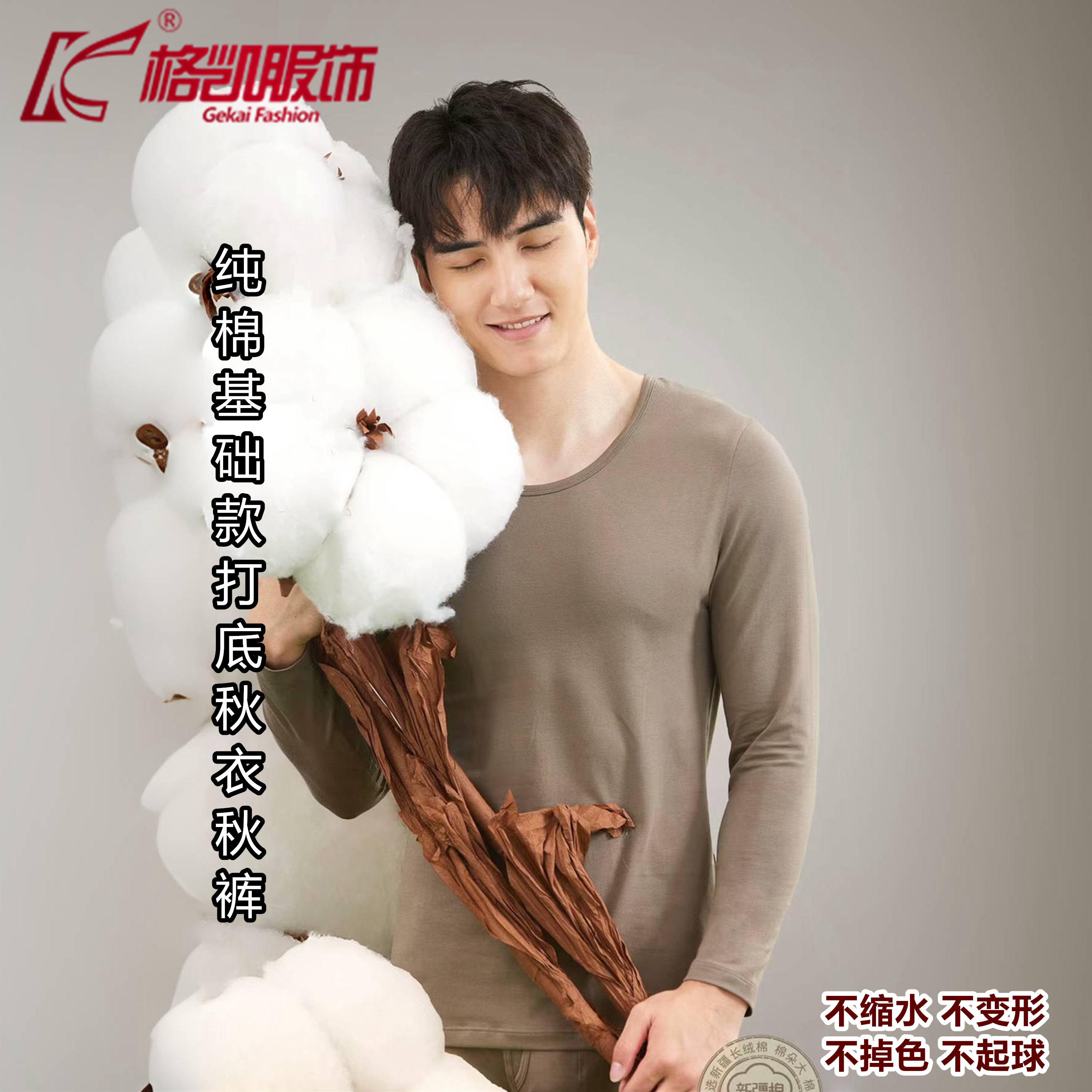 格凯男士纯棉常规简约打底衣新疆长绒棉柔软薄款保暖亲肤秋衣秋裤