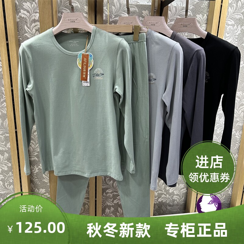 正品内衣圆领纯棉保暖套装男中领常规款打底秋衣秋裤棉毛衫保暖衣