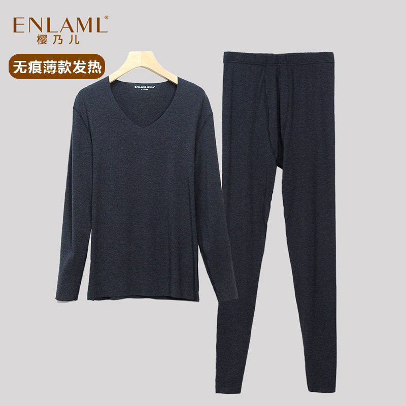 正品樱乃儿秋衣秋裤男无痕发热保暖内衣套装青年棉毛衫常规款打底
