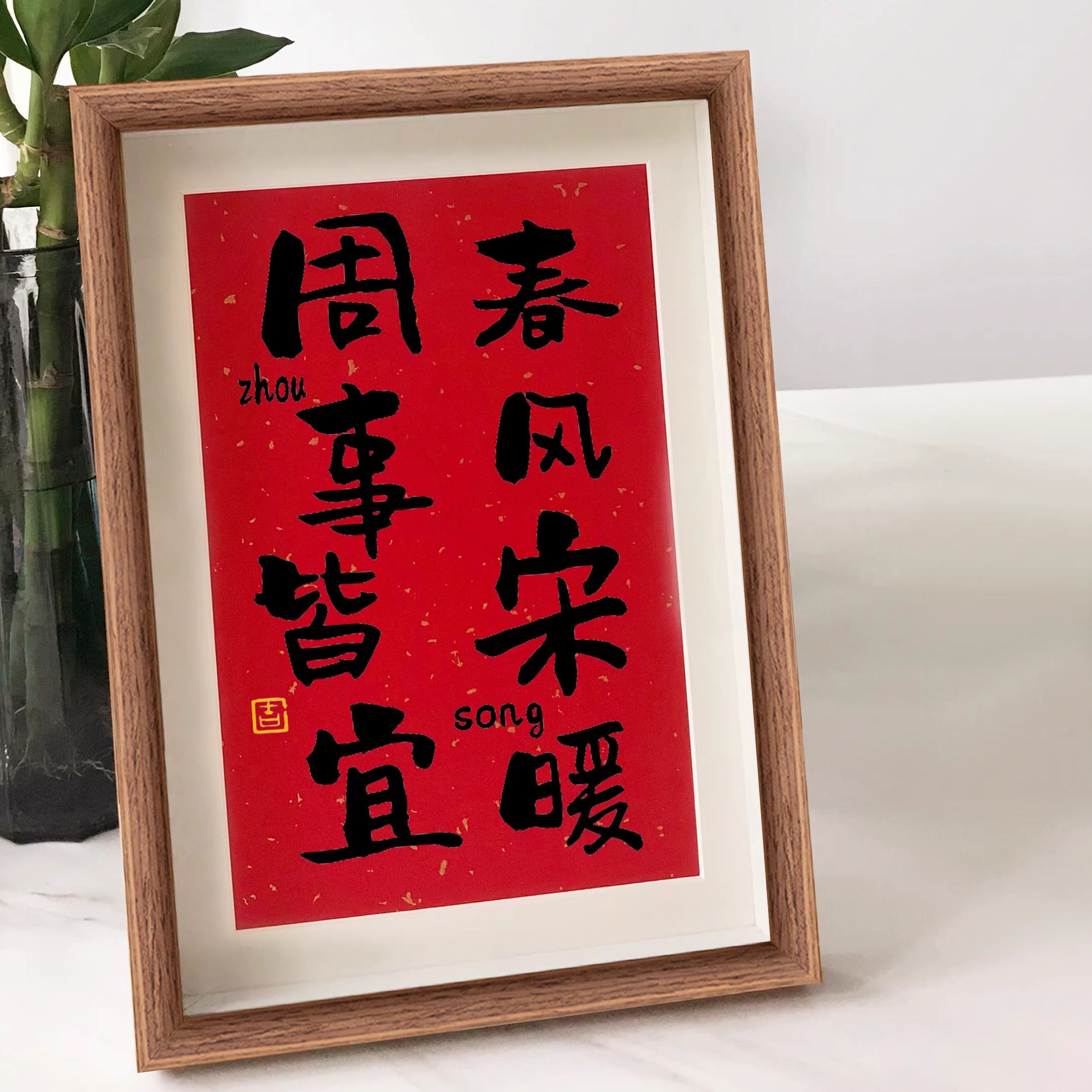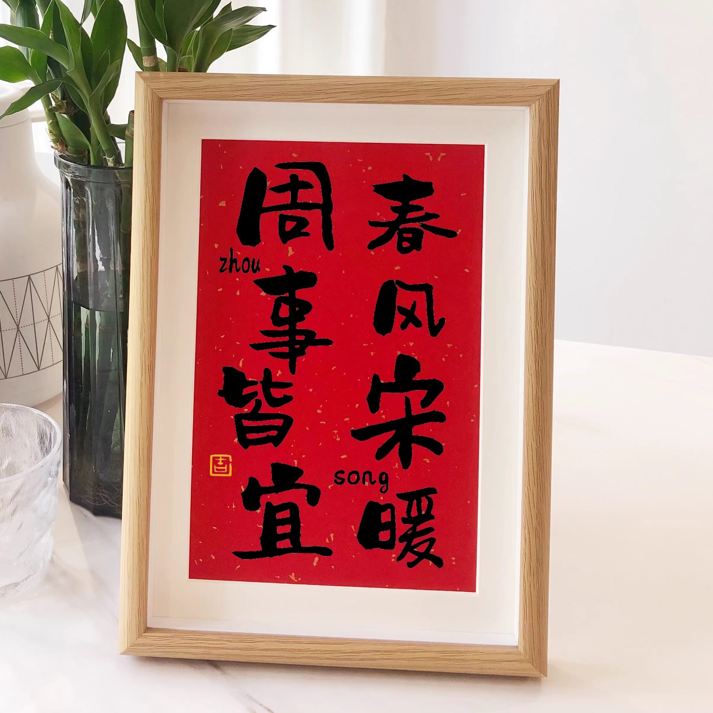 情侣姓氏谐音梗个性书法相框摆件洒金红底朋友领证订结婚礼物定制