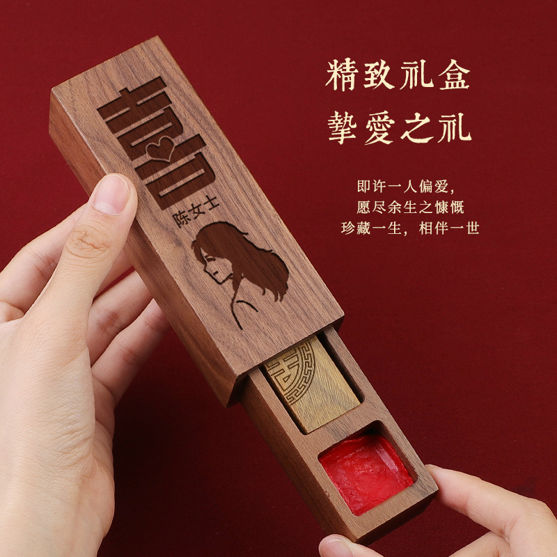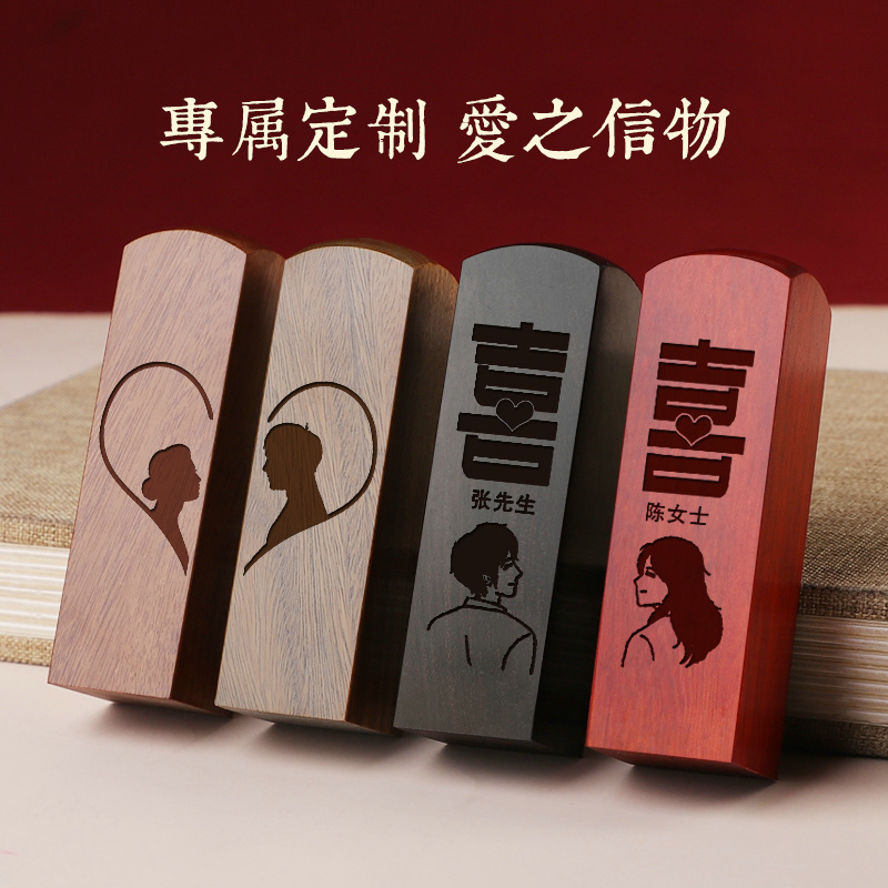 【520礼盒】婚嫁礼赠套装新婚礼物送新人印章实用礼品订婚结婚礼物定制情侣对章印泥婚庆玩偶摆件