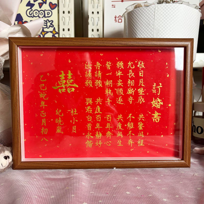 【绢布纯手写】传统毛笔订婚书婚书实木相框摆台结婚礼物定制高级