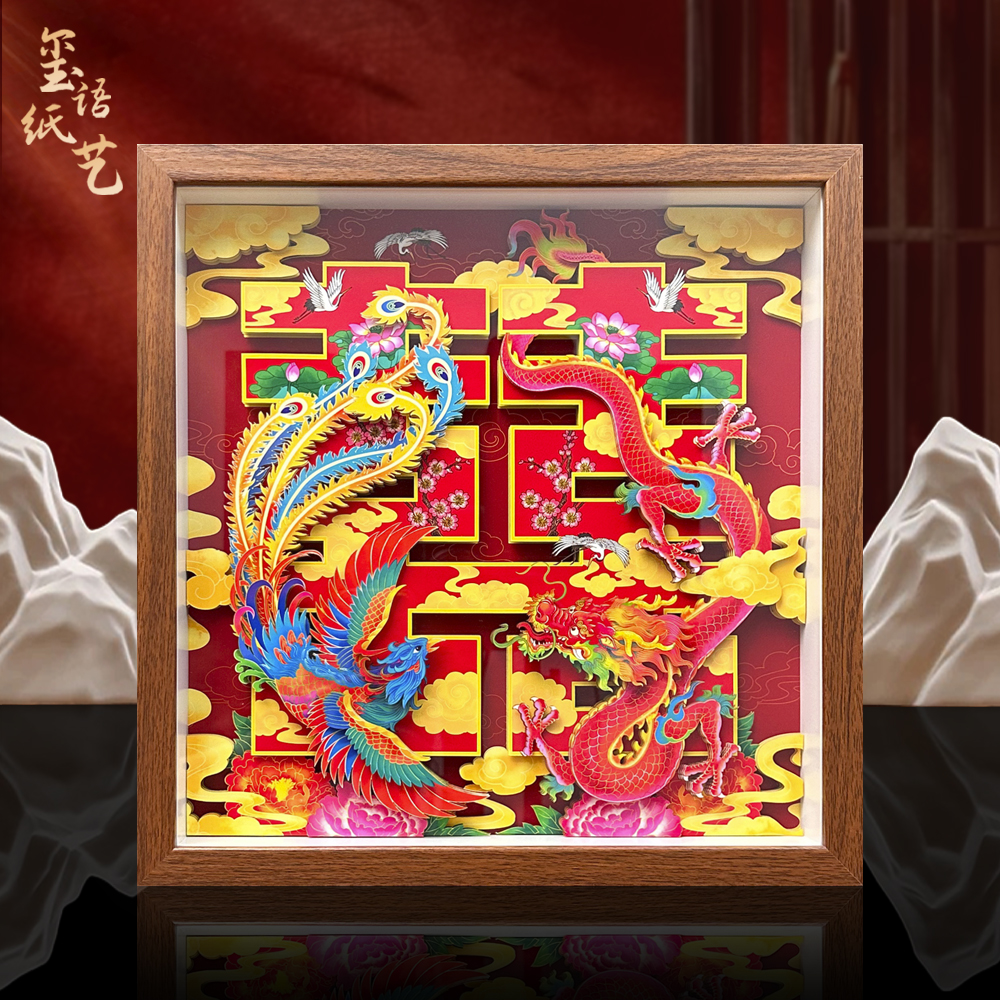 龙凤呈祥新中式结婚礼物定制婚礼布置剪纸立体装饰画摆台客厅摆件