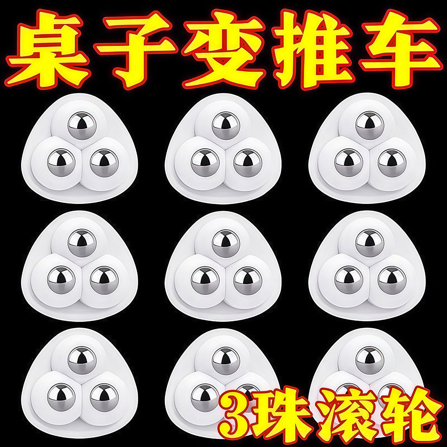 创意万向滚珠三珠滑轮粘贴式静音可移动轮子五金家具耐磨承重脚轮
