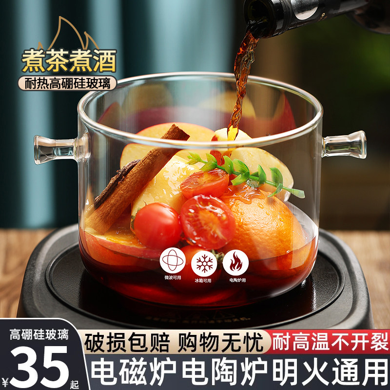 热红酒锅器皿围炉煮茶煮红酒的锅耐高温高硼硅玻璃炖锅电磁炉明火