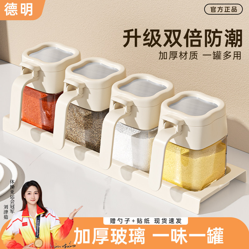 2025年新款调料盒勺料分离调料罐家用密封防潮盐罐调味瓶套装组合