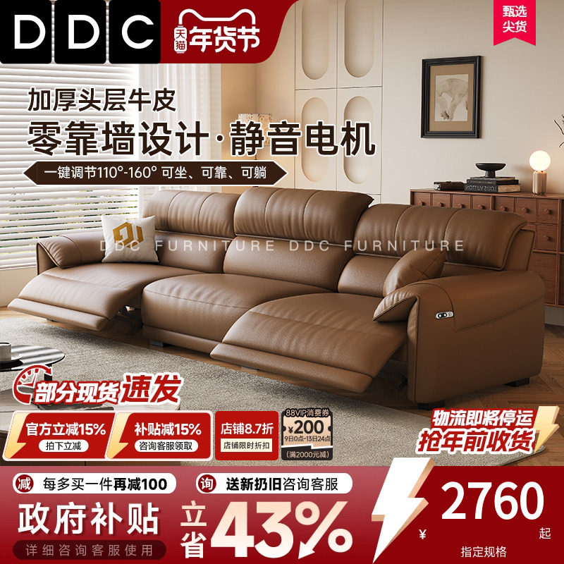 政府补贴DDC电动功能真皮沙发零靠墙客厅简约现代可调节影院沙发